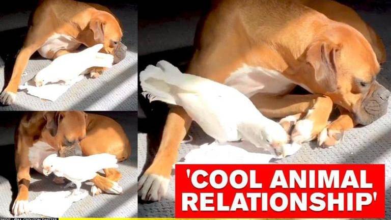 Cute animal videos always tend to leave netizens heart warmed and yet again a clip showcasing the relationship between a bird and a dog has left internet users in awe. Shared on Twitter, the video shows a doggo and a birdie engaging in harmonious interaction.