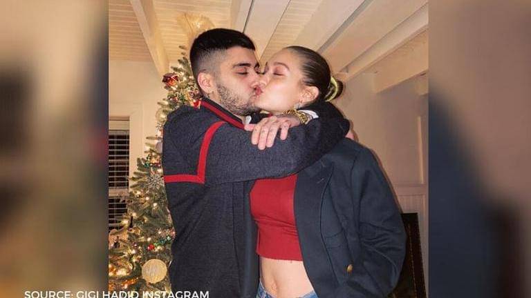 Gigi Hadid took to her Instagram on March 24, 2020, to share a few throwback pictures. One of these pictures was with her beau Zayn Malik. In this post’s fourth picture, Zayn Malik can be seen kissing Gigi Hadid. This picture was clicked during Christmas as we can see the decorated tree in the background. Zayn is seen sporting a dark and light grey colour tracksuit. Gigi can be seen adorning a red crop top which is paired with blue denim and a black overcoat.