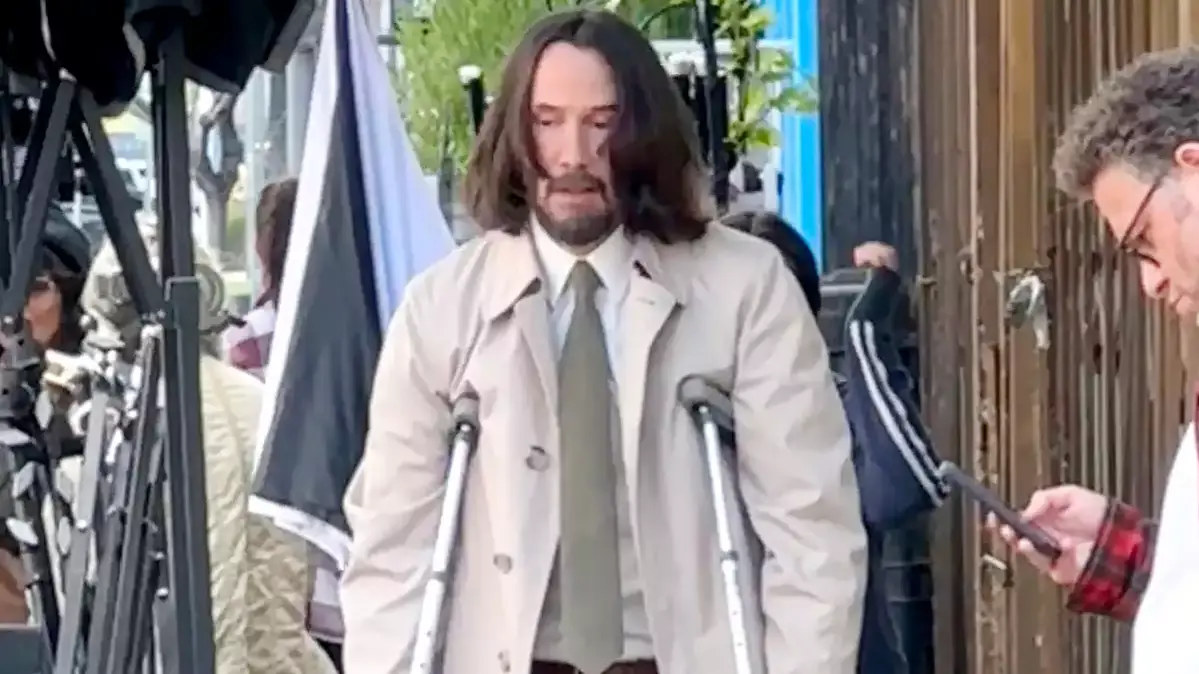 Pictures have been doing the rounds of the internet which strongly suggest that Keanu Reeves has sustained an injury on the sets of his upcoming film Good Fortune. The pictures in question, show Keanu Reeves, formally dressed in a pale grey three-piece suit, walking on crutches. Not just that, the actor's left knee carries a bandaged-in ice pack.