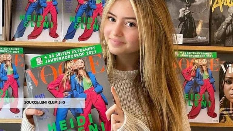 Leni Klum is the daughter of supermodel Heidi Klum and was born on May 4, 2004. The 16-year old recently made her debut in the modelling world alongside her mother. She appeared on the cover of German Vogue January/February edition. In the cover, the mother-daughter duo was wearing bold coloured pantsuits while Heidi was kissing Leni's cheek. Leni shared a picture of holding the magazine on her Instagram. She captioned the photo as, "MEIN ERSTES COVER ✨Couldn’t wait to buy one, or ten...".
