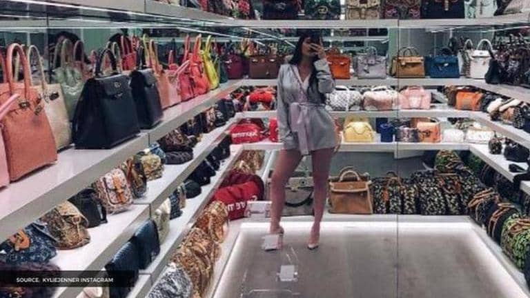 Kylie Jenner has often taken to her social media to treat her fans with her bag collections. Kylie Jenner has dedicated an entire room just for her handbags. Some time ago, Kylie took to her Instagram to post a mirror selfie of herself standing in her 'bag-room',  wearing a grey colour silk robe with baby pink colour ties and heels. She captioned the picture, “options”, suggesting that she has many options when it comes to bags.
