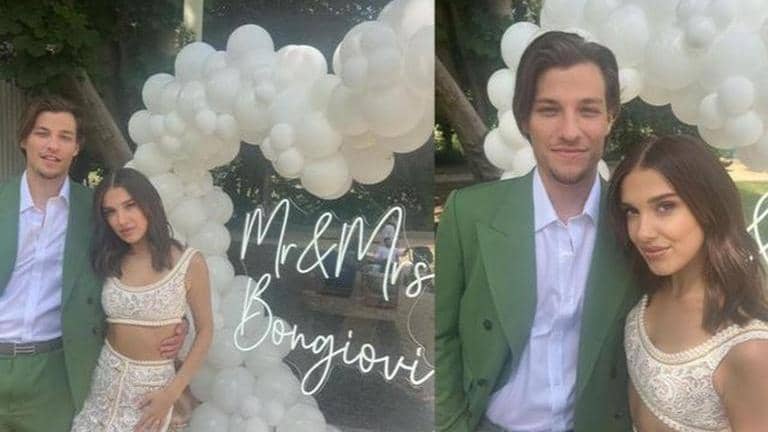 Millie Bobby Brown, known for her role in Stranger Things, and her fiancé Jake Bongiovi celebrated their upcoming wedding with a close-knit party attended by their families. Hairstylist Pete Burkill shared a series of photos from the event. The couple was seen posing in front of a white balloon arch and a neon sign displaying Mr. & Mrs. Bongiovi. While sharing the pictures, Pete wrote, "Congrats to this beautiful couple!"