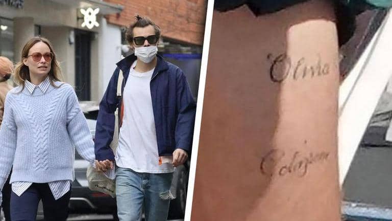 Harry Styles flaunts "Olivia" tattoo