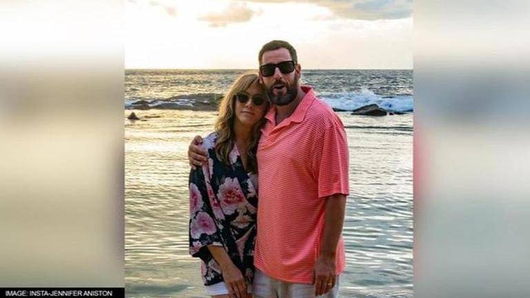 Taking to her Instagram handle, Jennifer Aniston recently shared a photo with Adam Sandler from the film's set in Hawaii. The photo saw the Friends star donning a pink and black floral shirt on white bottoms. She accessorised her simple look with black sunglasses. On the other hand, Adam Sandler wore a casual striped t-shirt on grey bottoms. He also had his sunglasses on while he hugged his co-star.