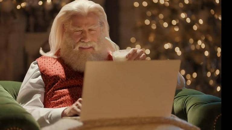 The ad for the banking company opens with John as Saint Nick who is reading a Christmas wish list on his computer. As he goes on to read, John is shown sipping a milkshake which will remind one of a memorable Pulp Fiction scene where his character Vincent and Mia shared a five-dollar milkshake. He also receives a video call from Pulp Fiction’s co-actor Samuel Jackson. The ad ends with Mr. and Mrs. Claus recreating the iconic dance move to the tune of Run Run Rudolph by Chuck Berry. Mrs. Claus is played by actor Dana Daurey.