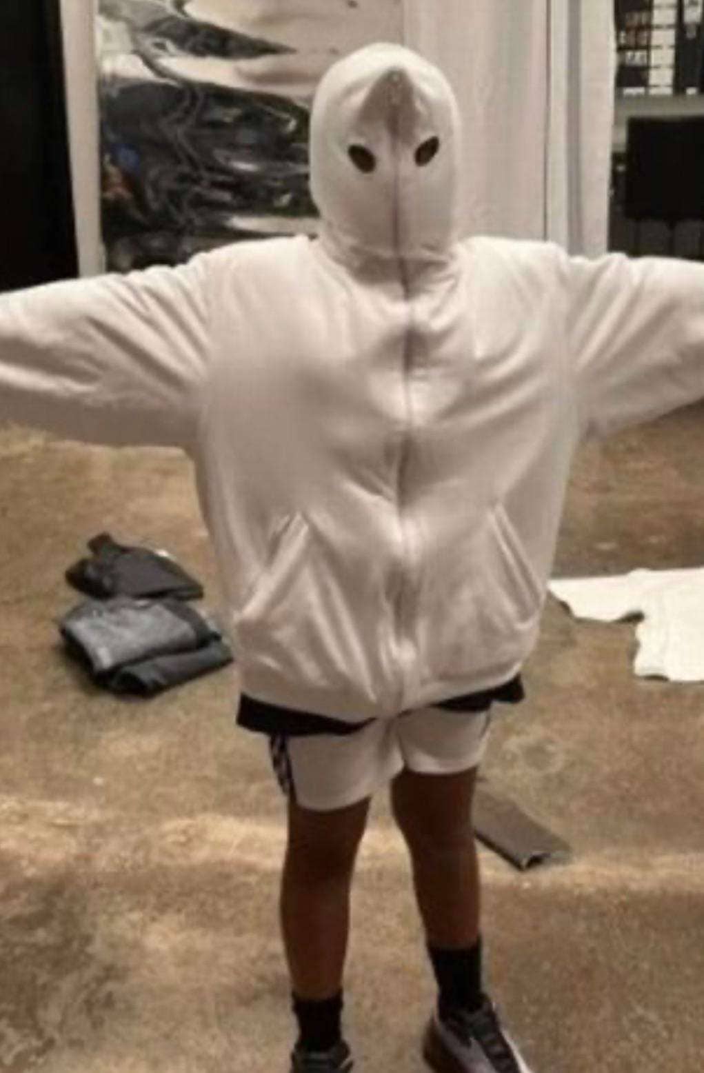 The hoodie was a part of Kanye's unreleased Yeezy clothes from his Season 9 drop.