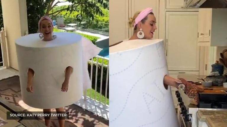 Katy Perry shared a video on Twitter where she can be seen wearing a toilet paper roll costume. The singer had also worn a hand sanitizer costume before.