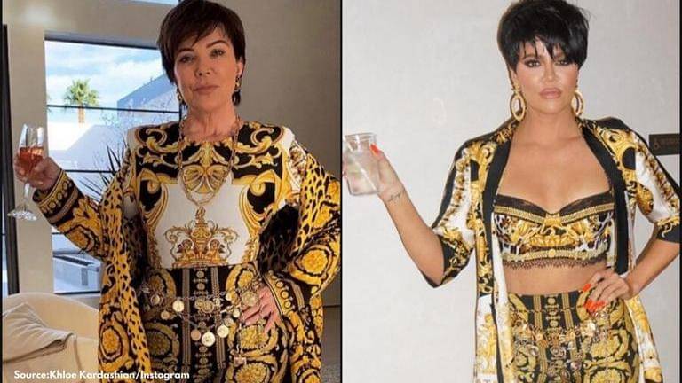 In the season finale of Keeping Up With the Kardashians, the family members dressed up as each other. Khloe Kardashian dressed up as Kris Jenner and looked like the spitting image of her mother. Khloe Kardashian wore the golden outfit like her mother along with the accessories. After Khloe Kardashian wore the wig, she looked exactly like her mother. In the picture, Khloe is seen standing like her mother.