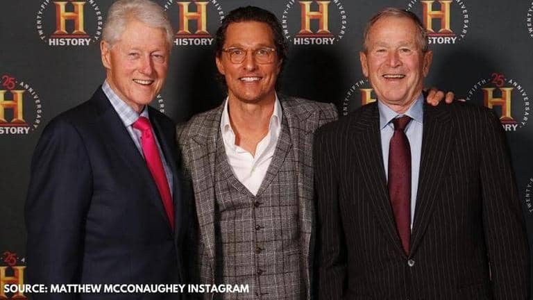 Hollywood actor Matthew McConaughey attended History talks ‘Leadership and Legacy’ event, which was hosted by the History Channel at Carnegie Hall in New York. As he walked the red carpet, he was seen posing with two former US Presidents- Bill Clinton and George Bush. The Gentlemen actor looked sharp as he shared the space with two of the most well-known men in America. Check out the picture shared by the actor here.