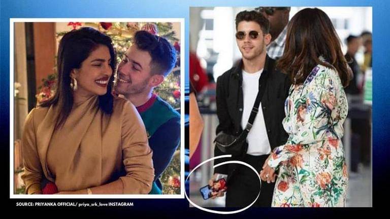 As seen in the pictures shared by Priyanka's fan club, the couple is all busy at the airport as they presumably head for a trip. While Nick and Priyanka are seen walking hand-in-hand on the airport, fans caught a quick view of Nick Jonas' phone wallpaper in one of the pics. Though it's a blurred view, the mobile wallpaper features both Nick and Priyanka looking at each other. Fans have dropped endearing comments as they noticed the wallpaper on Nick's phone.