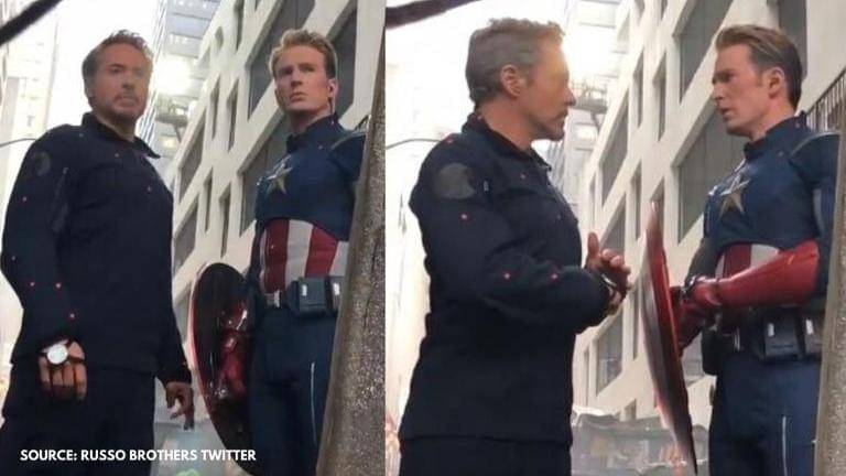 The first video shared by directors Joe and Anthony Russo, is of Captain America and Iron Man's "do you trust me" moment in the film. The scene is shot just before Robert Downey Jr's Tony Stark and Steve Rogers travel back in time, to 1970. Apparently, this was also the last time Downey and Evans shared the screen together in the movie.