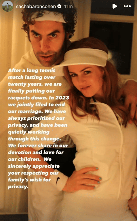 Sacha Baron Cohen and Isla Fisher's divorce announcement