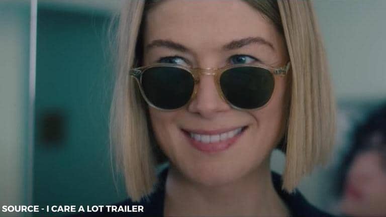 I Care A Lot follows Marla Grayson, a shady court-appointed guardian whose livelihood involves cheating the elderly into trusting her with their assets. Her signature dialogue, "I care a lot" is a part of her act to lure the victims into an old-age home to eventually auction their house. Soon enough, she and her partner find themselves in hot waters when they try to scam their way out with another elderly, being completely oblivious to her ties with a powerful gangster.