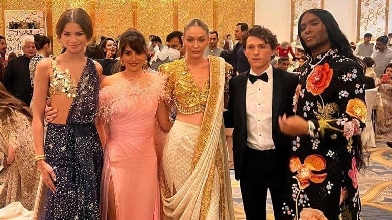 Tom Holland, Zendaya, Penelope Cruz and Gigi Hadid struck a pose together at day 2 of the Nita Mukesh Ambani Cultural Centre (NMACC) opening in Mumbai.