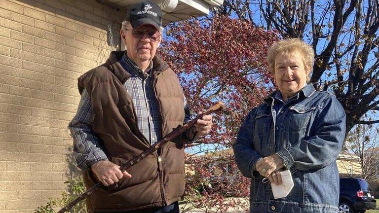 (Dan and Barbara Donovan of Niles say they were targeted by intruders when a man claiming to be a ComEd employee came to their home, Tuesday, Nov. 17, 2020 in Niles, Ill. Donovan, an 81-year-old former Marine from suburban Chicago used his grandfather's antique Irish walking stick to chase off three burglars and deliver one a thump in the head for his trouble. Image Credits: AP)