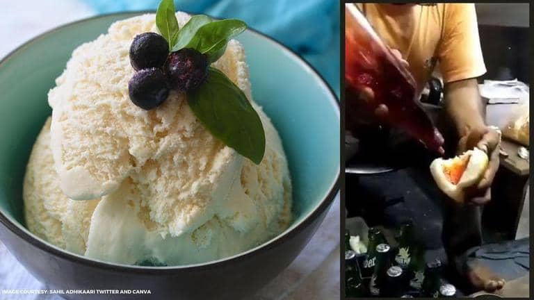 In the video posted, a man in an ice-cream truck is seen taking a maida pav and coating its insides with a few flavoured sweet syrups. These syrups are generally used by ice-gola makers to give the gola a bright colour and a strong flavour. He goes on to add a huge scoop of ice-cream into the prepared pav before slightly pressing it together and aligning it well. The man in the cart is then seen pouring another layer of the pink syrup to give it a special effect. He also adds a coating of nuts on top of the ice-cream before serving it to the customer. Have a look at the ice-cream vada pav viral video on Twitter here.