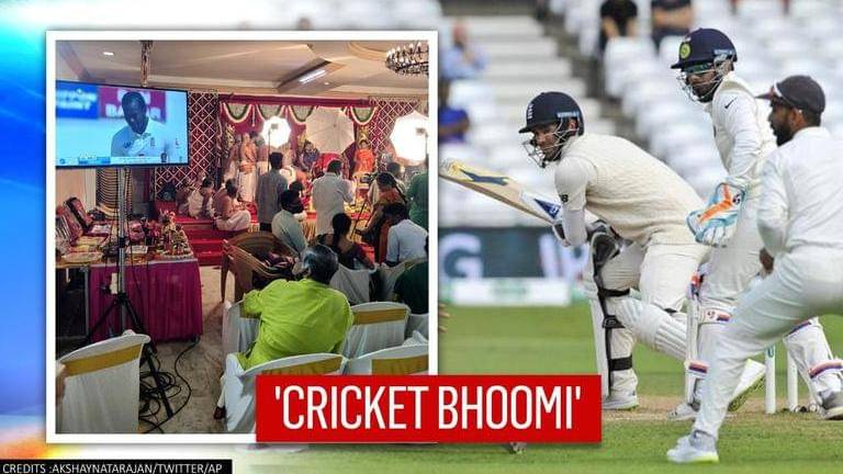 A viral incident proves that India is a country of passionate cricket lovers as the first Test match between India and England was live-streamed at a wedding ceremony in Tamil Nadu. The host decided to live-stream the India-England Test match in order to ensure some entertainment time for the guests while wedding rituals were taking place in the background. The match was streamed on a giant television screen for the guests, who can be seen keenly watching it in viral photos on the internet.