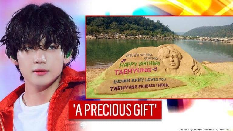 Commissioning a massive sand art for BTS V's birthday- 'Taehyung Fanbase India' honoured the Kpop sensation in a uniquely Indian style. Well-known sand artist from Odisha, Dasarath Mohanta designed a stunning sand art for BTS V's birthday as he drew Kim Taehyung's face in the grains of sand at Sunakhamb under the banks of Baitrani river in Odisha.