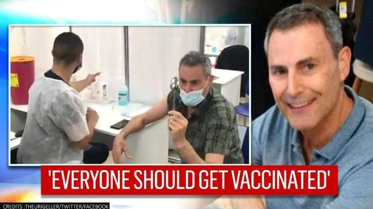 Uri Geller took to his official Twitter handle to share the video, where he can be seen performing the spoon-bending trick while being administered the vaccine.