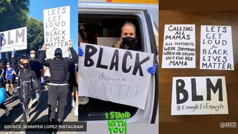 Jennifer Lopez and Alex Rodriguez join LA protest with 'Black Lives Matter' signs