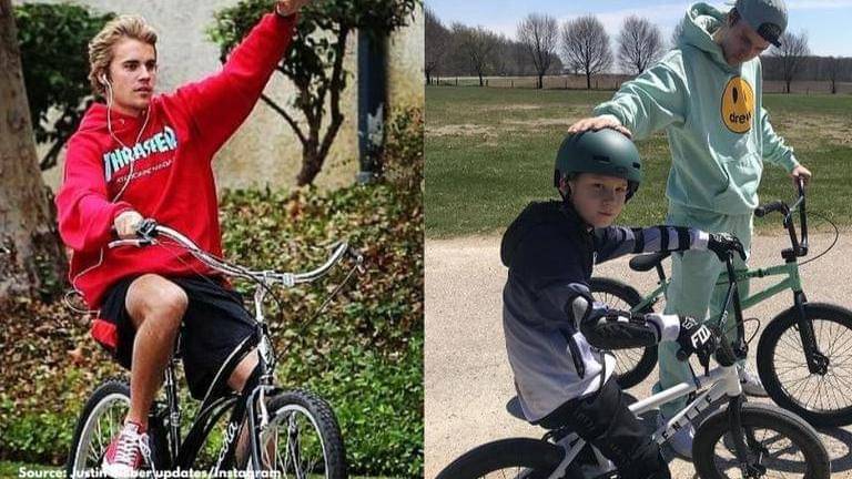 Justin Bieber is currently enjoying some quality time with his family in Canada, under quarantine, practising social distancing. The singer is utilising his time in the best way possible, learning how to ride a bike and occasionally shared pictures and videos of him bonding with his family. Justin Bieber loves to ride the bike and currently, he's teaching his younger brother some cool tricks. Here are some pictures and videos of Justin Bieber that proves he loves to ride the bike.