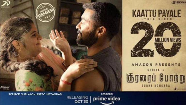 Suriya's movie Soorrai Pottru's Kaattu Poyale song hits 20 million views on YouTube. Read on to know more about the song and the movie.