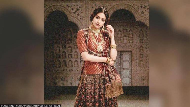 In the teaser poster, Keerthy Suresh can be donning a floral chanyacholi featuring shimmery gold borders. Statement earrings, a maangtika on her forehead and ghungroo accentuates her ethnic look. Meanwhile, red bold lips and wavy hair left open completes her entire look. Keerthy Suresh seemingly does the hook step of her upcoming track while the camera captures her. Helmed and choreographed by Brinda Gopal, the music of Gandhari is given by Pawan Ch.