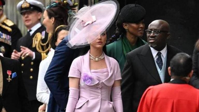 Katy wore a pink half-sleeve short blazer teamed with matching knee-length skirt with ruffle detailing. She completed her look with matching gloves and derby church hat. The American song-writer accecorised her look with pearl multi-tiered necklace, earrings and a white handbag. In one of the videos, she is seen looking for her seat at the coronation. In another video, she can be seen sitting in the middle of the crowd. In one of the videos, she can be seen greeting a bunch of people. Take a look at the videos here.