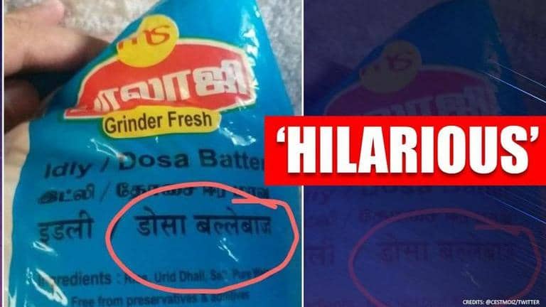 A picture of the literal translation on the packet of Dosa batter has sparked laughter on the internet. Shared by a user named Harpreet on microblogging site Twitter, the picture has left netizens in stitches as the blue coloured pack with “Idly Dosa Batter” written on it, translated lines into “Idly Dosa Ballebaaz” in Hindi and one other regional language. Quick to notice, the user shared the photo captioned damn, you google translator, which led netizens to share some similar literal translations in the comments sections.