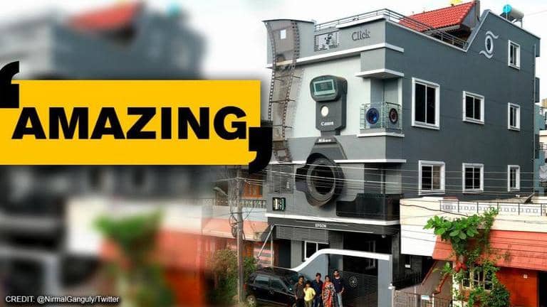 Taking love for photography up a notch, Ravi Hongal hailing from Belgaum in Karnataka has caused a stir online with his one-off camera-shaped three-storey house. According to reports, photography became Hongal’s passion early on his life and used to visit rural areas to click pictures in ‘Pentax’ cameras and now owns a studio. Developing ‘love’ for the activity, the Belgavi resident has even named all his three kids on camera manufacturing companies including Canon, Nikon, Epson.