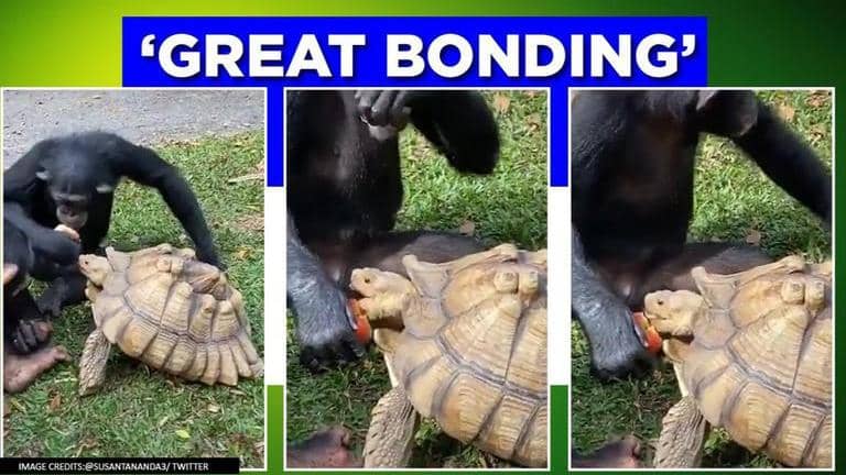 A delightful video of a chimpanzee sharing an apple with a tortoise surfaced on social media and left several netizens in awe. Indian Forest Service officer Susanta Nanda took to Twitter to share the 14- second-video which has now received almost 2,000 likes. In the video, one can see the chimpanzee eating an apple and after taking a bite, the animal is seen offering it to a tortoise in the vicinity.