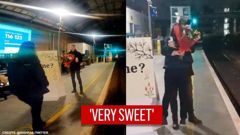 In a heartwarming moment, a man surprised his girlfriend, a train driver by profession by proposing to her on the platform as the train pulled in at a Dublin station. According to footage shared by the Irish Rail on its official Twitter handle, the man named Conor O’Sullivan waited patiently for his girlfriend Paula Carbo Zea with a bunch of flowers and a marriage proposal standee that read, “Will you marry me?” As Paula, a resident of Barcelona according to the PA news agency drove the train to a halt she couldn’t help but notice her boyfriend and his message written on a huge white sign at the platform. “It was magical and perfect,” she told the agency, adding she hadn’t expected that to happen in public.