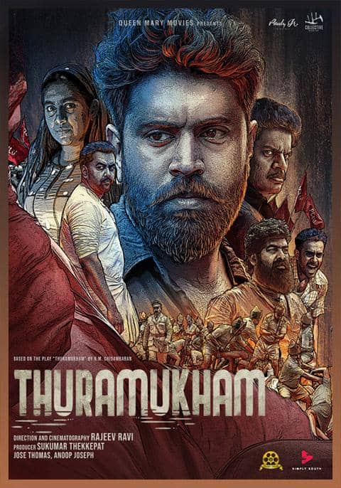 Action thriller Thuramukham released in theatres on March 10 2023. The film tells the story of a labourer with dodgy values who is hired by the port authorities to attack and halt the efforts of the labour unions. Directed by Rajeev Ravi, the film was scripted by Gopan Chidambaran. The film features an ensemble cast of Nivin Pauly, Indrajith Sukumaran, Joju George, Arjun Ashokan, Sudev Nair, Manikandan R. Achari, Senthil Krishna, Nimisha Sajayan, Poornima Indrajith and Darshana Rajendran.