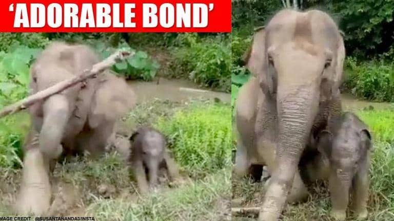 The short clip that has taken the internet by storm shows an elephant mother and her calf crossing a swamp. Further in the clip, the mother tusker could be seen using its trunk to remove a branch from the way so that its offspring could march ahead. The mother continues lifting the branch for a few seconds and makes sure that her calf safely moves ahead.