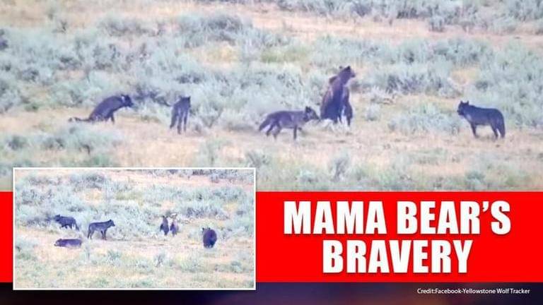Mother grizzly bear protects her cubs from pack of wolves, watch incredible video