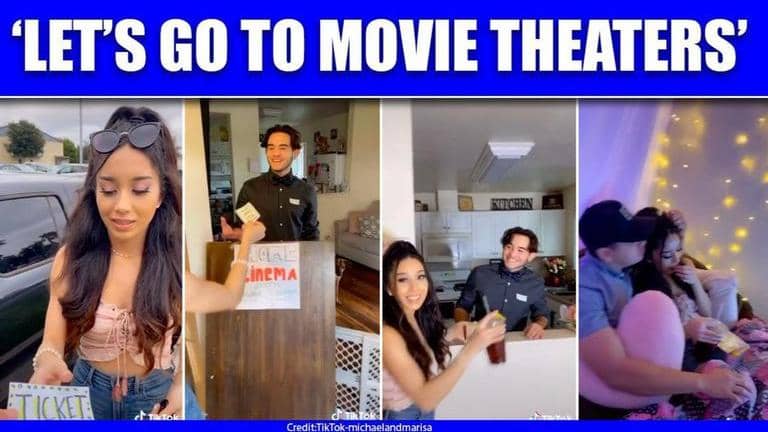 The video starts with Michael asking, “Babe, let’s go to the movie theatres”. Marisa can then be heard saying, “Aren’t they closed?”. Michael then quickly hands her a ticket, which is basically a piece of paper with the word ‘ticket’ written on it.