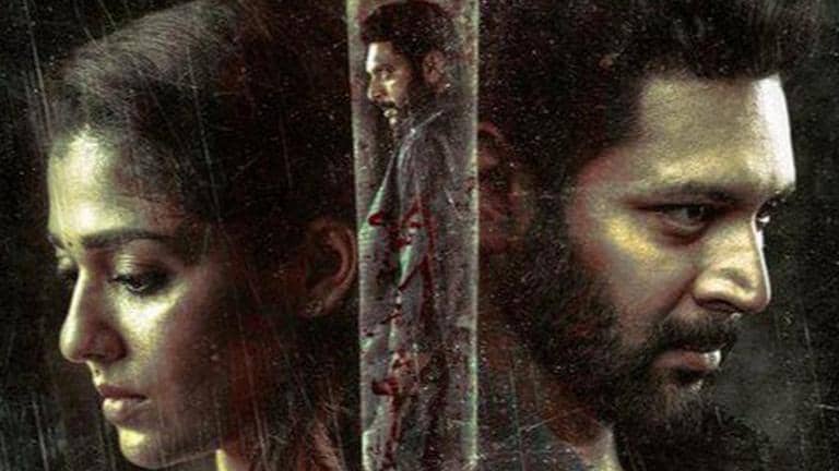 In the new poster for Iraivan a huge knife, with blood dripping down from it, separated Jayam Ravi and Nayanthara's character, who looked away from each other. The poster had hues of black and grey, hinting that the mood of the film will be serious and sombre.