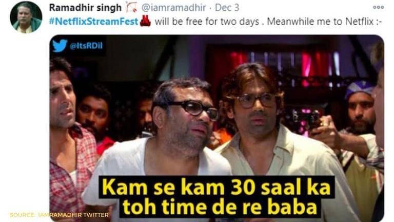 Netflix's Stream Fest: Memes that flooded the internet over the last few days to rejoice the free content streaming offered by the OTT platform on Dec 5 and 6.