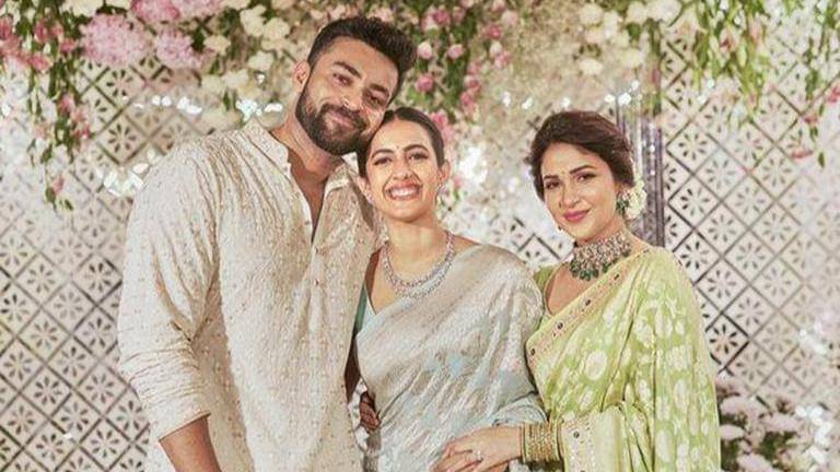 This absence sparked further speculation about the couple's rumored divorce, which has been circulating on the internet for some time.Taking to her Instagram handle, Niharika shared delightful images from the engagement ceremony, where she looked resplendent in a graceful light blue saree. Varun, on the other hand, opted for an elegant ivory kurta, while Lavanya captivated everyone in a stunning pistachio green saree.