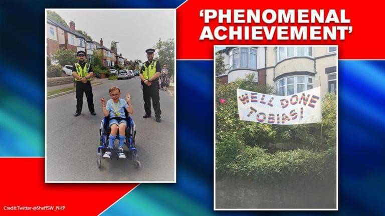 A nine-year-old boy with cerebral palsy and autism, Tobias Weller completed a marathon challenge during the lockdown and has raised £91,719, three times the initial target of £30,000. Nicknamed as Captain Tobias, he can only walk with the help of crocodile walker but the entire crowd cheered for him as he finished walking 42 kilometres in 70 days to raise money for his “two favourite charities”, Sheffield Children’s Hospital and Paces School.