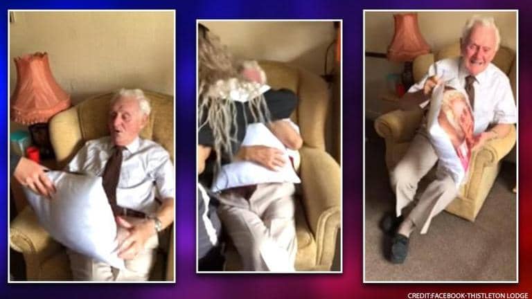 A video of an elderly man from the United Kingdom is doing rounds on social media and the story behind it has left many people with warm fuzzy feelings. The video is of British war veteran Ken Bembow, who according to the post is currently staying at an assisted living facility, and is being looked after by caregivers. The viral post said that Bembow had been sleeping with a photo of his late wife by his side when one of the caregivers noticed the risk behind it and decided to gift him a pillow with his wife’s face on it.
