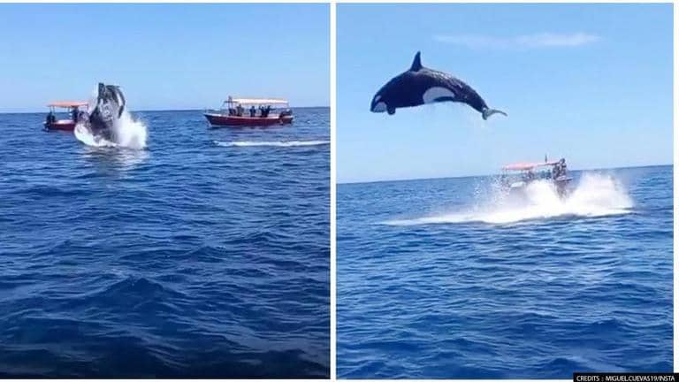 Orca leaps out of water during dolphin hunt in Mexico, watch video