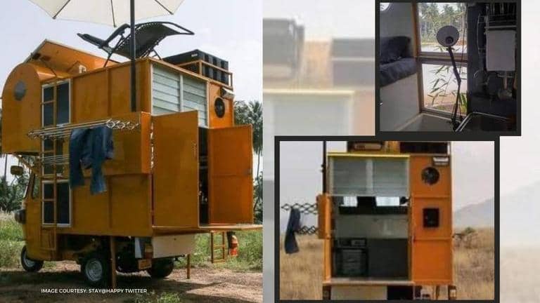 The pictures and details about the auto-rickshaw home had been released by a Twitter handle by the name Rushma R. The tweet also speaks about the multiple features of this vehicle while giving out a few details about the efforts put in by Arun Prabu. The post says that this auto rickshaw has been built on a 36 sq ft space and has a bedroom, living room, kitchen, toilet, bathtub, and a workspace. The small house also comes with a 250 litre water tank. It has been fitted with 600 watts solar panels, batteries, doors, cupboard, hangers, to name a few.