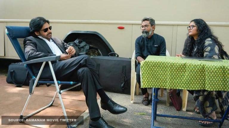 Earlier today, i.e. November 11, 2020, the Gamanam trailer was unveiled by Pawan Kalyan and the makers of the film from what appears to be the set of Kalyan's Vakeel Saab. The National Film Award-winning actor recently resumed the shoot of his much-awaited courtroom drama in Hyderabad. Now, in the latest pics of the Agnyaathavaasi actor sporting a dapper black suit from the trailer unveil of Gamanam went viral as soon as they were shared on the film's official Twitter handle.