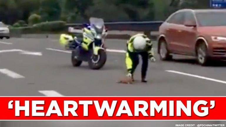 A ‘heartwarming’ video of a police officer rescuing a lost kitten from the middle of the road is taking rounds on the internet. The video shared by a Chinese local media outlet was shared on Twitter on April 13 and since then it has been viewed more than 34,000 times. In the video, one can see the police officer stopping his bike in the middle of the road just to take the kitten away from the flowing traffic.