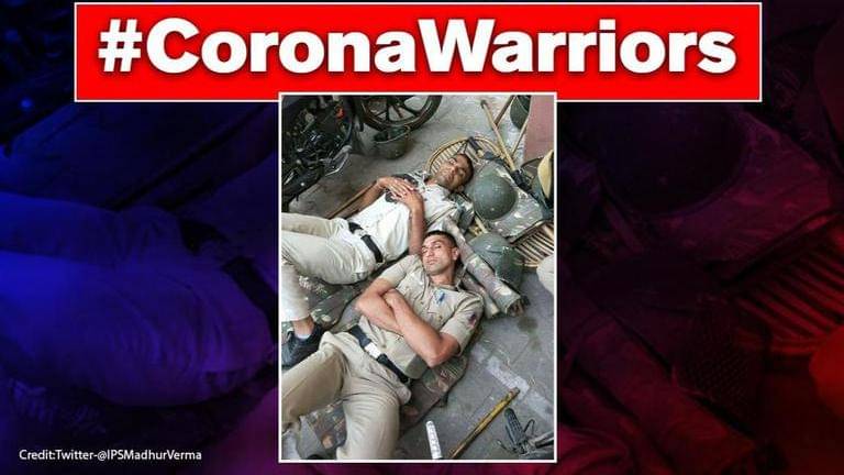 As the nation is under lockdown until May 3 and police personnel are on the frontline of the battle against coronavirus pandemic, a picture of two cops sleeping on the ground after duty has taken the internet by storm.