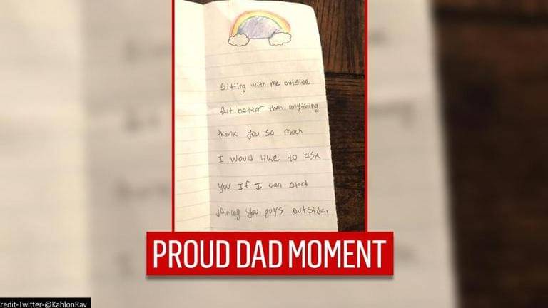 It was then that his son along with a friend decided to accompany him and hung out with him for lunch. At the end of the day, his son received a letter from the new kid who not only thanked him for his generosity but also offered to join him outside in the future. A feature of the letter that especially caught people’s attention was the rainbow and cloud that the new kid drew.