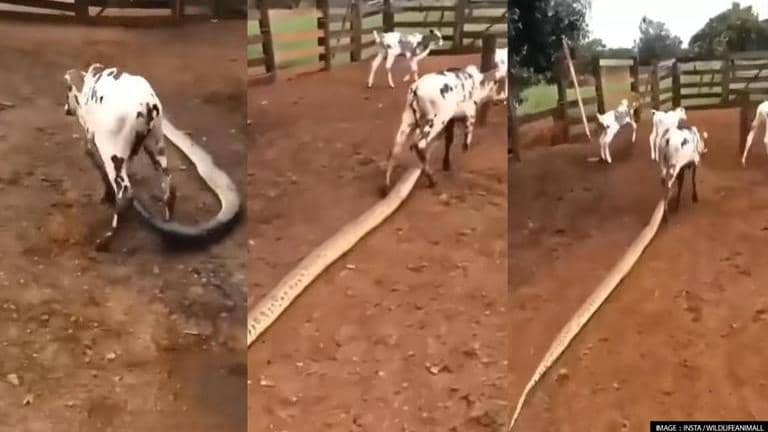 The viral video shows a massive python entering a cow enclosure and latching on to the leg of a calf, resulting in a sudden rush. As the video progressed it shows that the grip of the snake was so strong that the calf was not able to release itself from the grip. It was still not known if the calf managed to escape or fell prey to the reptile.