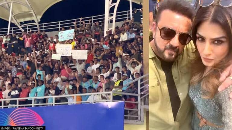 Raveena Tandon spots 'KGF 2' fans while watching IPL game with Sanjay Dutt; Watch