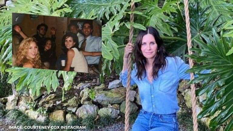 Courteney Cox took to her Instagram handle a long time ago and shared a piece of beautiful memory from the time she began filming for her American tv show, FRIENDS. In the photo, the entire cast of the show can be seen hanging out together. On the left, actor Lisa Kudrow can be seen sitting on the couch in a black dress while next to her, Jennifer Aniston and Matt LeBlanc can be seen waving towards the camera while being clicked. On the other side, Courteney Cox can be seen in a white attire holding a white glass in her hand. Next to her, the other two cast members, namely David Schwimmer and Mathew Perry can be seen sitting in a blue and white coloured shirt respectively.